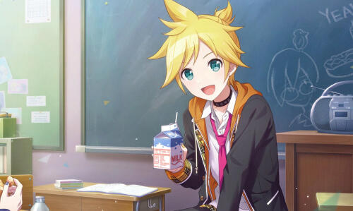 len of the classroom sekai is a straightforward person who says what he means, and looks out for others— particularly rin, who tends to act before she thinks.this sekai was born from leo/need's feelings.